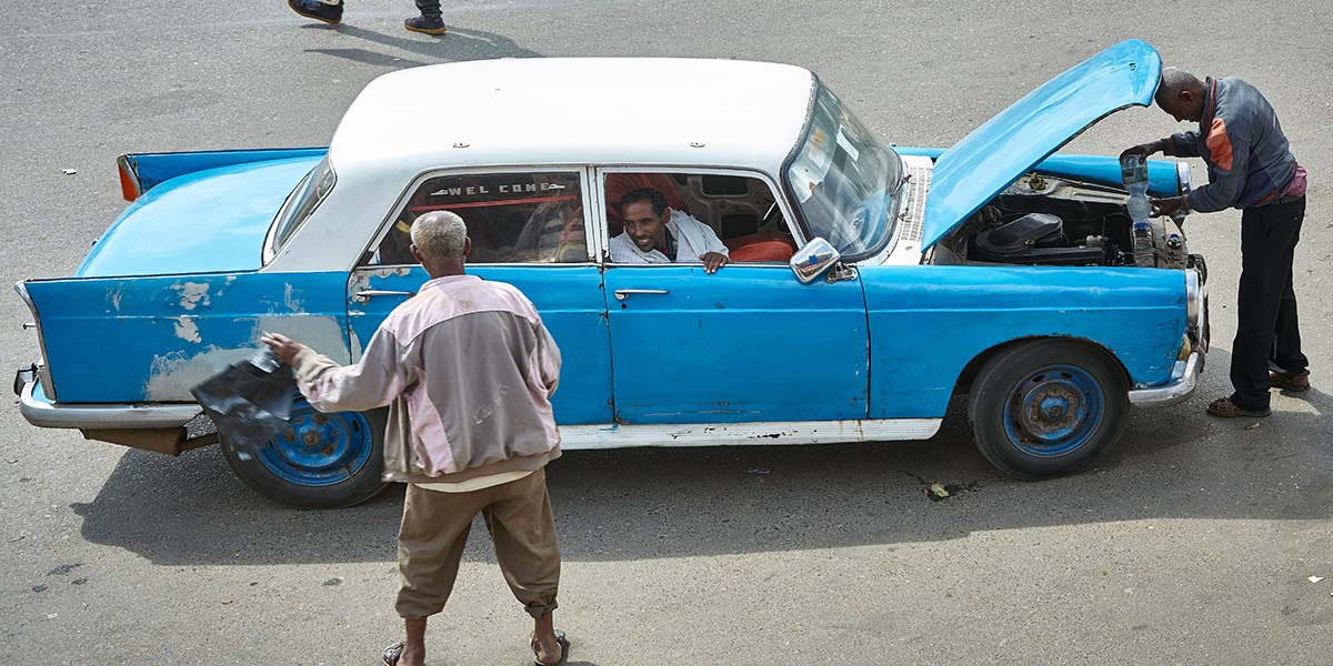 Stel je voor: het is 2025. Als liefhebber van de Citroën DS wandel je door de stoffige straten van Harar. Dat is een middelgrote stad in het oosten van Ethiopië. Je bent op zoek naar een taxi in het hectische stadscentrum. Voor een hotel steek je je hand omhoog. En tot je verbazing stopt er geen moderne minibus, maar verschijnt er een zwerm felblauwe oude Peugeots 404, alsof je in een tijdmachine bent gestapt. Deze auto’s hebben de tand des tijds niet alleen overleefd, ze lijken wel aan een zevende leven begonnen. Gedeukte bumpers, scheve wielen, kleurrijke laklagen met veel plamuur en geen airconditioning. Tóch rijden ze nog steeds dagelijks door de stad. De Citroën DS als tijdgenoot van de 404 zul je zeker hier niet meer tegenkomen.