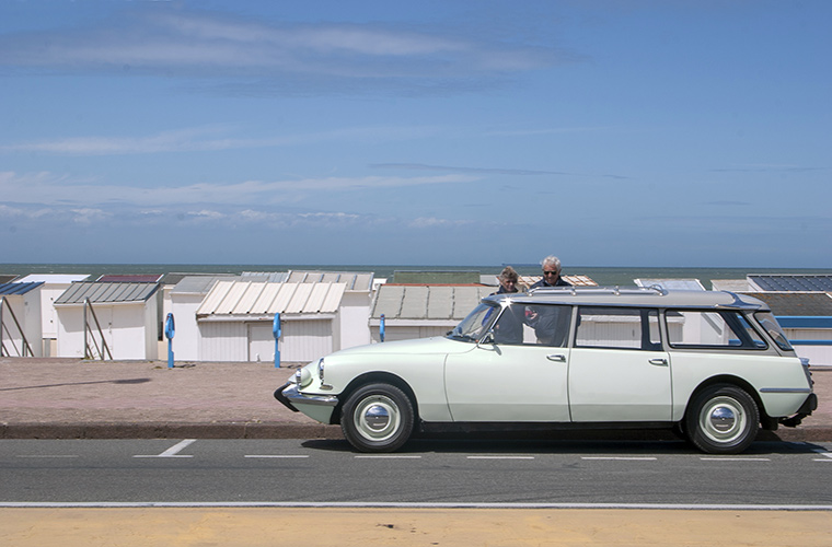 De auto die model staat in deze aflevering van Kleur Bekennen is een ID19FA Break, type ambulance. De datum eerste toelating is november 1966. Het is een Break van modeljaar 1967 en deze veert dus hydraulisch met LHM-olie. De auto heeft een volledige onderhoudshistorie van 0 tot de huidige kilometerstand van 93.000 kilometers. Deze Blanc Carrare Break is in mooie staat. De auto is door de eerste eigenaar in 1979 van een nieuwe laklaag voorzien. Omdat die lak er al zo lang op zit, zou je bijna ‘dans son jus’ zeggen. Er zit een prachtig muisgrijs Jersey Rhovyline-interieur in. Type ambulance betekent dat hij af fabriek voorzien is van een deelbare en neerklapbare achterbank. Dat is tegenwoordig heel praktisch.