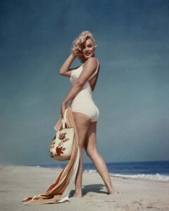 Hij fotografeert haar in 1957 op het strand van Long Island. Monroe draagt hier een badpak dat bijna spierwit is. Alle accessoires op de foto zijn in pastelkleuren. Ze is dan net getrouwd met de toneelschrijver Arthur Miller. Marilyn Monroe draagt vrijwel altijd witte kleding. Als Hollywood-ster heeft zij de witte mode op de kaart gezet. En wie weet heeft zij de kleurmengers van Citroën geïnspireerd om een witte DS op de markt te brengen. Pastelkleuren worden gemaakt door een zuivere kleur te vermengen met wit. In het geval van Blanc Carrare gaat het precies andersom: het is wit met een beetje groen.