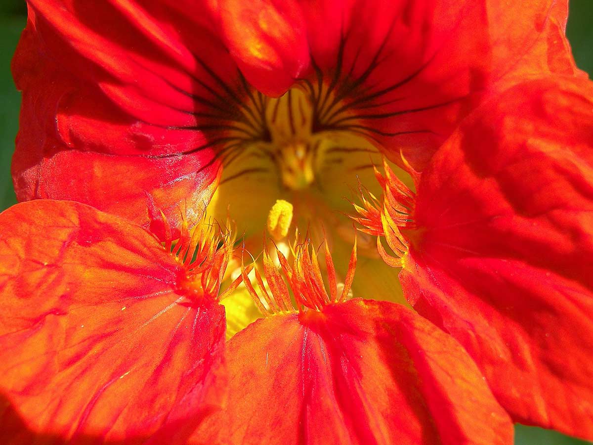 Er zijn vele oranjes. Saffraan en amber om maar een paar voorbeelden te noemen. Het felrode vermiljoen zit er niet zo ver van vandaan. Capucine lijkt wat mij betreft het meest op de kleur van de loodmenie. Daar zit iets meer geel in, die je ook ziet bij de Oost-Indische kers. Misschien is dat niet de meest voor de hand liggende gedachte, want lood staat voor gif en milieuvervuiling. Maar in de jaren vijftig en zestig van de vorige eeuw wordt het nog kwistig toegepast bij van alles en nog wat. Het wordt nog tot voor kort gebruikt in de bouw om te voorkomen dat ijzer en hout in aanraking komen met metselwerk.
