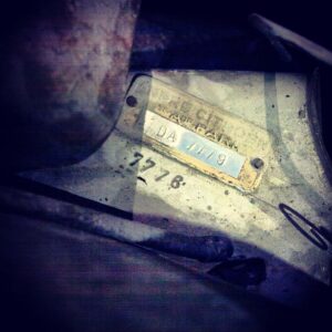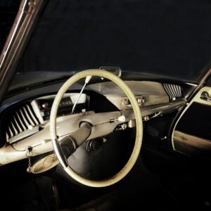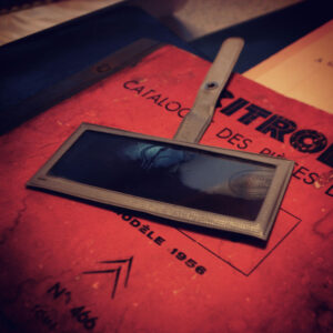 Deze DS19 heeft zeker een museale potentie: een industrieel massaproduct met een prachtig patina van 58 jaar stilstand, behangen met alle denkbare accessoires. Van Robergel naar H.G., ROBRI, een AREL buizenradio, een kledinghaakje van achteruitkijkspiegelfabrikant CIPA tot het losse, originele make-up spiegeltje. De bekleding is nog bedekt met uitgehard beschermend plastic, al is er met ruwe hand een deel van het plastic van de bestuurderstoel afgerukt. Eronder zitten hagelnieuwe zetels bekleed met de stof Bleu Royal. Deze DS straalt geschiedenis uit. Je voelt het als je bij de auto staat; de persoonlijke geschiedenis, de handtekening van de monteurs die de auto geassembleerd hebben. Het lijkt of je zojuist uit een tijdmachine gestapt bent. Alsof je naast Rembrandt staat die met zijn spatel een streek zet op de Nachtwacht. Deze auto maakt al die tot in de perfectie gerestaureerde DS’en tot roestvrije wrakken, tot nietszeggende en zielloze auto’s. Het lijkt wel of deze auto een aura bezit, zoals de Duitse cultuurfilosoof Walter Benjamin (1892 – 1940) dat ooit beschreven heeft. De hand van de schepper van het object wordt tastbaar. Het zwakke licht in Harry’s loods versterkt dit effect alleen maar.