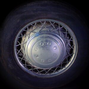 De auto heeft Robergel wieldeksels in plaats van de fabrieksdoppen. De eengatsvelgen zijn in een soort metallic donkergrijs gespoten. Oorspronkelijk waren de velgen in de kleur Rouille (AC405). De roestbruine kleur zou te zeer opvallen achter de nepspaken van de wieldoppen. Vandaar het donkergrijs. Zelfs het reservewiel is niet vergeten.