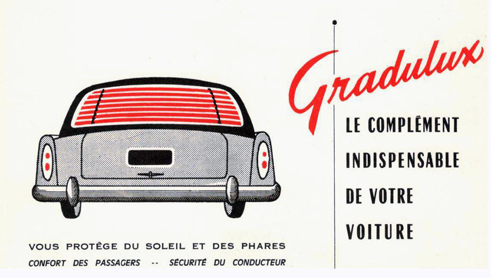 Om de passagiers achterin tegen de zon te beschermen is er een Gradulux zonwering tegen de achterruit gemonteerd. Die bestaat uit twee delen en is alleen te vinden op de oudste modellen. De lamellen van Gradulux worden voor de latere modellen uit een stuk gemaakt. Die achterruit is van kunststof en is na bijna 70 jaar nog zo helder als kristal.
