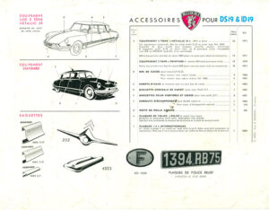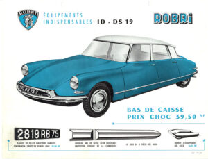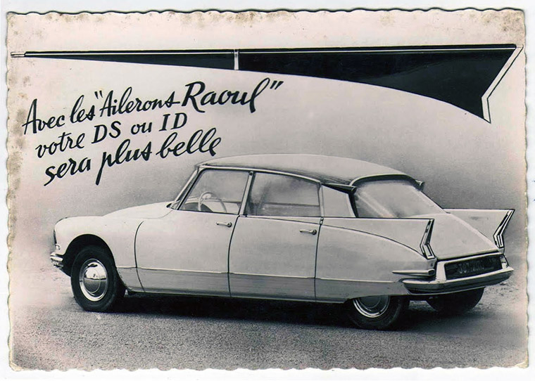 Het personaliseren van je auto is echt niet iets van de laatste jaren. In het tijdperk van de eerste neus van de Citroën DS zijn veel autobezitters op zoek om met behulp van attributen hun auto verder te verfraaien en te voorzien van een eigen identiteit. Met name voor de Franse merken is er in die jaren een ruime keuze aan accessoires. Stripjes in alle soorten en maten, stropdassen, rubberen bumperrozetten, platte uitlaateindstukken en steenslagbeschermingsplaten voor het lakwerk bij voor- en achterschermen, et cetera. De bekendste leverancier is ROBRI, met het ridderharnas als beeldmerk. De fabriek was gevestigd in Puteaux, tegenwoordig een buitenwijk van Parijs. Andere populaire merken zijn Robergel, H.G, Sabolux en Raoul. Deze laatste spant de kroon met een set vinnen voor het achterscherm van de Citroën DS.