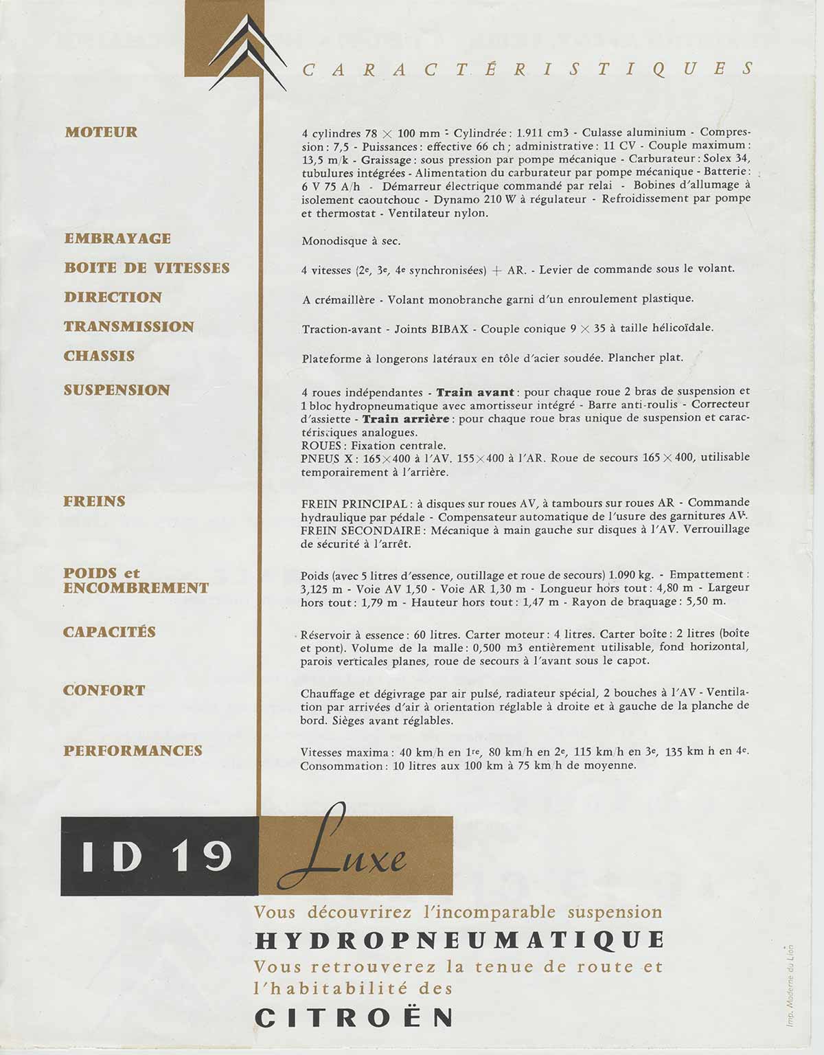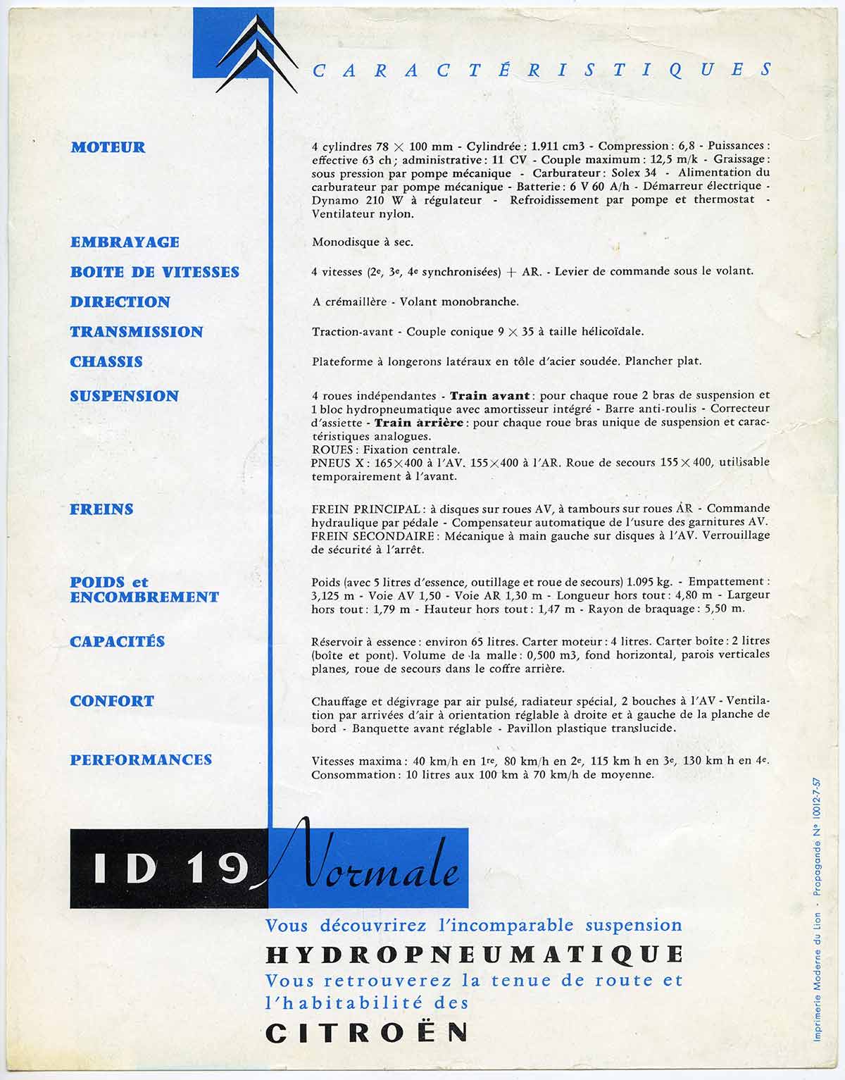 Brochures Citroën ID19 Normale en ID19 Luxe