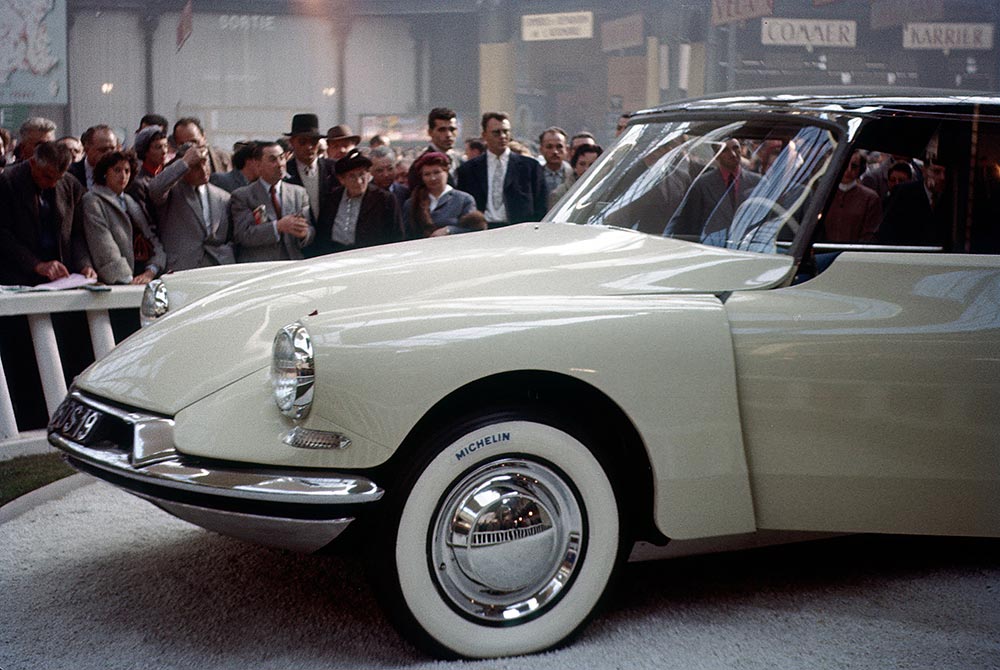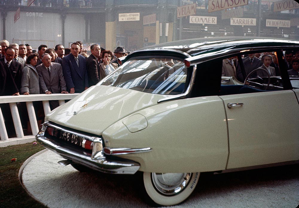 Ieder jaar ga ik in november naar Paris Photo in het Grand Palais in Parijs. Dezelfde plek waar de DS19 voor het eerst aan het grote publiek getoond wordt. Paris Photo is een grote fotobeurs voor de fine fleur; het is een ode aan de kunst van de fotografie. Ik loop altijd naar de plek waar ooit die champagnekleurige DS19 stond, onder die indrukwekkende glazen koepel. En ik probeer mij de menigte rond deze auto op de eerste dag van de beurs voor te stellen. Ik hoor de oh’s en ah’s en zie de verwondering. De auto is geen verrassing meer. Een paar weken eerder heeft het Franse tijdschrift l’Auto-Journal in het nummer van 15 september 1955 al afbeeldingen onthuld onder de kop ‘Voici la bombe Citroën’. Maar nu is het donderdag 6 oktober 1955. Er staat nu een echte Citroën DS19 midden in het Grand Palais. En zoiets heeft autominnend Europa nog nooit gezien.
