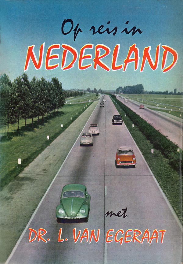 Vakantie is trouwens ook zo’n verworvenheid van het naoorlogse Nederland, dat meer vrije tijd en geld te besteden krijgt. In zijn boeken laat Egeraat zijn lezers kennismaken met het romantische Nederland, die uiteindelijk toch liever kiezen voor de Costa del Sol onder de dictatuur van generaal Franco. Het omslag van zijn boek Op reis in Nederland met Dr. L. Van Egeraat – uitgegeven door het damesblad Margriet in 1961 – laat waarschijnlijk onbedoeld zien hoe Nederland verandert. Op de cover staat een foto een snelweg met auto’s. Het is de manier waarop we het gedachte romantische Nederland kunnen bereiken. Dus geen Hollandse molentjes, kastelen, landhuizen, of fraaie rivierenlandschappen met grazende koeien op de voorkant. Die bewaart hij voor de binnenkant. Hollandse Taferelen laat Nederland zien op een sobere wijze. Aangeharkt, keurig en schoon. Soms doordrengt met de calvinistische geest, zonder opsmuk en romantiek. De ansichtkaarten laten de nieuwe naoorlogse architectuur zien, de fietsen, het nieuwe winkelcentrum in een buitenwijk of de recent geopende Boerenleenbank en het nieuwe Van der Valk hotel. Kijk er nuchter naar, zoals wij Hollanders dat nu eenmaal doen. De ansichten op de achterkant van het clubblad krijgen een kort bijschrift. Soms staat er een QR-code bij, die je smartphone of tablet leidt naar de locatie zoals die er vandaag de dag uitziet. Dan kun je ervaren hoe het Hollandse cultuurlandschap nogmaals veranderd is.