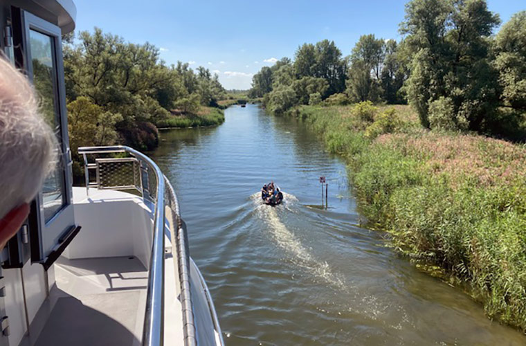 Geen motorgeluid en stinkende uitlaatgassen op deze splinternieuwe elektrisch aangedreven boot Z9. Tijdens deze unieke rondvaart langs grote en heel kleine vaarwegen laveerde de boot soepel overal tussendoor. Vanwege het mooie weer waren we niet alleen. Allerlei kleine bootjes voeren door de kreken en het was dus oppassen geblazen. Dankzij de ervaren kapitein ging dit vlekkeloos.