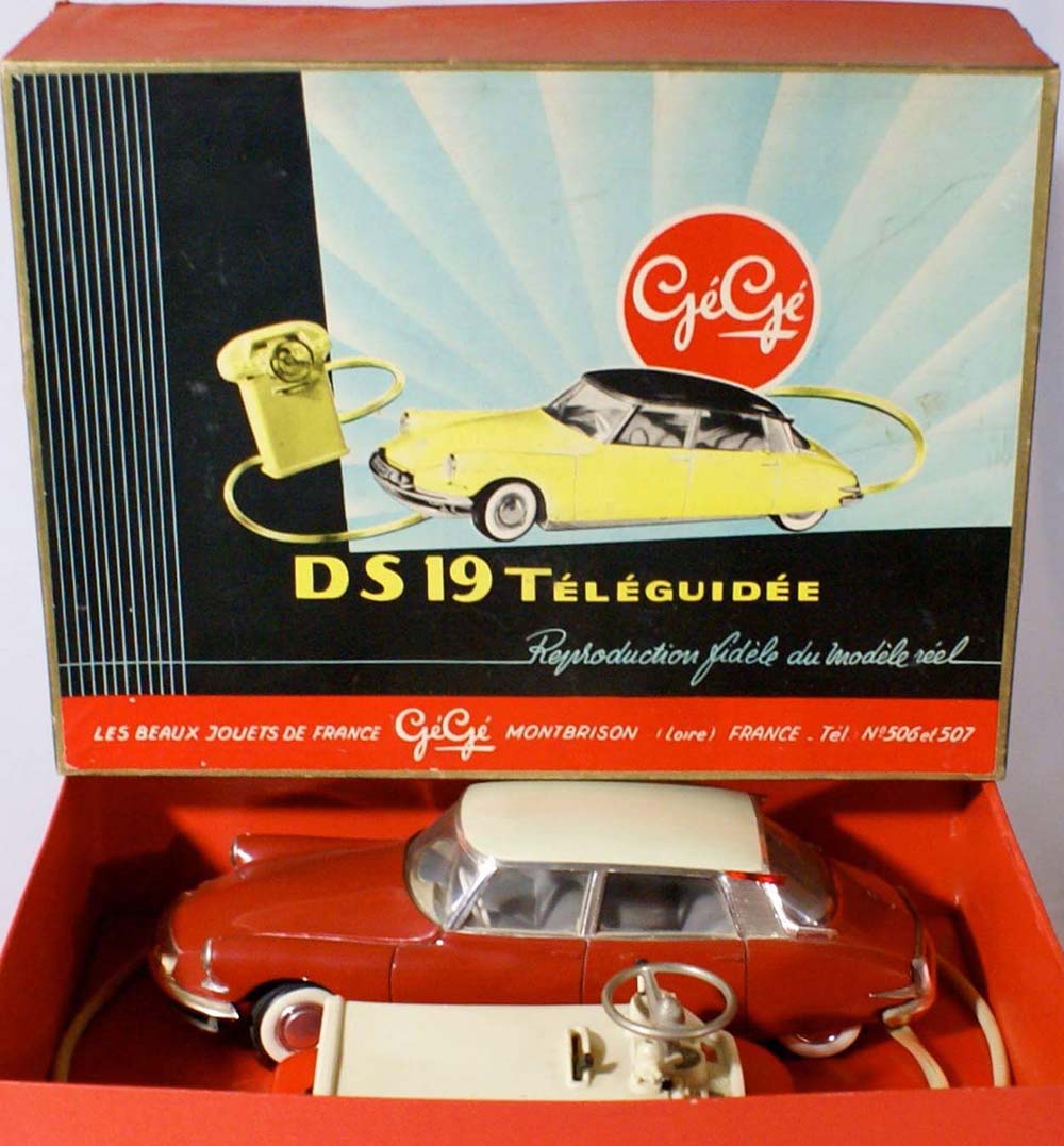 Rouge Estérel is een kleur die heel goed werd nagemaakt door het Franse speelgoedmerk GéGé op hun DS19. Het model is in de schaal 1 op 18 en dateert ook uit 196o, net zoals de echte. Het heeft een Blanc Carrare dak en Gris Éléphant interieur. Dit is een van de weinige voorbeelden die ik kan noemen uit de DS-speelgoedperiode de l’époque. Maar wel een goede als het om de kleur gaat. Het model is gespuitgiet in kunststof. Ik ken het in slechts twee aandrijvingsvarianten. Het bezit een ‘clockwork’-mechaniek, of een elektrische aandrijving.