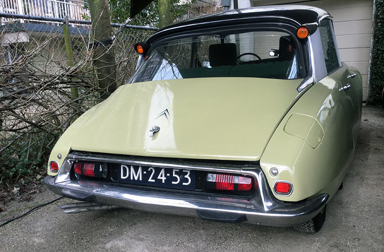[dropcap size=big]D[/dropcap]e aankoop van deze auto heb ik bewust meegemaakt. In de showroom van Garage Van Boxmeer in Sint-Oedenrode stond een DS op een verhoging. Een grijze derde neus met ronde tellers in het laatste dashboard. Wat me bij is gebleven zijn de diverse controlelampjes rondom de rode STOP-lamp. De lampjes lichtte in het schijnsel van de showroom feestelijk op en ik vond dat mooi. Ook lagen er in ons dorpje Nuenen wat wrakken van snoeken in een tuin achter een huis aan de rand van het dorp. Geen benul om even aan te bellen voor een mooie wieldop of ander souvenir. Dat durfde ik niet.
