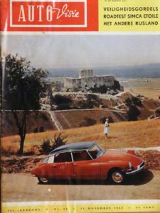 Even speuren en voilà, een Autovisie, 5e jaargang, nummer 24 gedateerd op 25 november 1960. Op de omslag een Citroën DS in de kleur Rouge Estérel met zwart dak een rood jersey interieur. De kaft van het blad is een beetje beschadigd maar na 57 jaar en twee maanden is dat geen schande. Het blaadje ziet er verder nog strak uit.