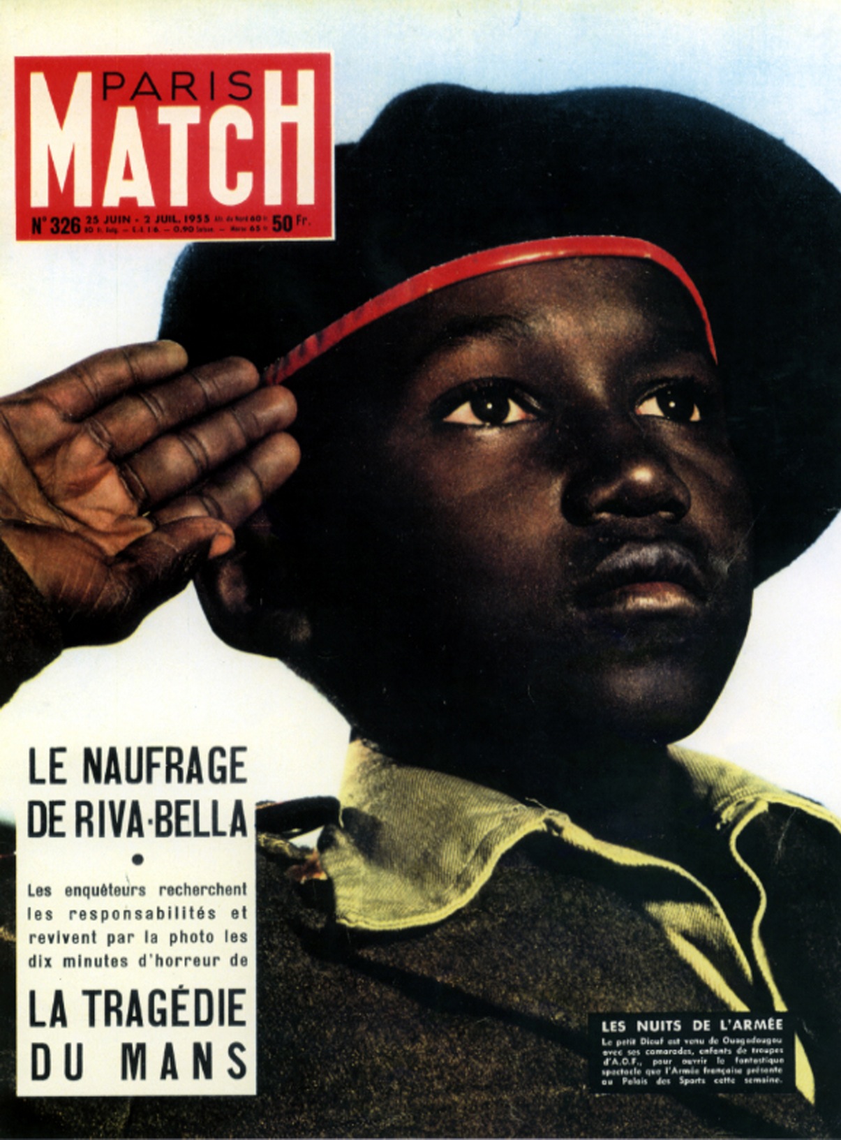Een ander bekend voorbeeld is een foto op voorpagina van het Franse tijdschrift Paris Match uit 1955 met een beeld van een saluerende en gekleurde Franse soldaat. De eerste betekenis is ‘zwarte soldaat salueert naar de Franse vlag’. De tweede betekenis van deze cover is een ‘positief beeld van het Franse imperialisme’. Dat wil zeggen: alle onderdanen, ook die uit de koloniën, zijn trouw aan Frankrijk. De tweede betekenis wordt als vanzelfsprekend overgenomen, terwijl dit in werkelijkheid cultuur-historisch bepaald is (de DS is goddelijk) en daarmee een mythe. (RH)