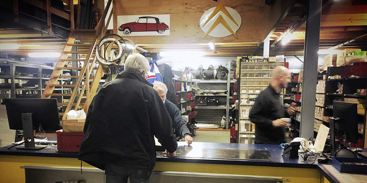 Het magazijn ligt centraal in het midden van het land: in Tull en ‘t Waal. Dat is niet ver van de stad Utrecht. Aangezien dat voor sommige leden nog steeds een bezwaarlijke afstand is, verzenden we ook onderdelen via Post.nl. Bestellen kan via het e-mailadres magazijn@citroeniddsclub.nl. Verzending is aan grenzen gebonden: grote, zware of kwetsbare onderdelen zijn nu eenmaal lastig te versturen. In overleg is het vaak wel mogelijk om een afhaalafspraak te maken buiten de wekelijkse openstelling op dinsdagavond.