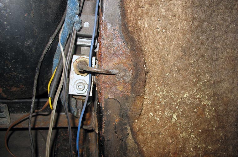 Het merendeel van de hydraulische leidingen aan de voorzijde wordt gestraald en opnieuw gepassiveerd. De leidingbundel in de linker dorpel – die van voor naar achteren loopt – was niet meer in goede staat en wordt vervangen door een geheel nieuwe. Dit geldt ook voor alle achterste leidingen die nodig zijn voor de vering en het remmen. Op het merendeel van de metalen leidingen zijn rubber slangen geschoven voor bescherming of (het voorkomen van) trillen/doorschuren tegen andere constructiedelen. Breng deze weer aan op de nieuwe leidingen. Ik gebruik hiervoor veelal benzineslang met de juiste gewenste diameter.
