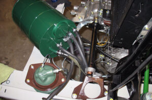 De eerste hobbel is in elk geval genomen, de motor loopt netjes. Nu is het moment aangebroken om het hydraulisch systeem te ontluchten en te checken of er geen lekkages zijn. Na het meerdere malen indrukken van de beroemde rempaddenstoel blijkt de toevoerleiding naar de voorremmen halverwege op een koppeling te lekken. Wat steviger aandraaien van de wartels bracht de oplossing. De handmatige bediening naar de hoogste stand gaf geen resultaat. Met andere woorden: de wagen kwam niet omhoog vanuit zijn laagste stand. Het enige wat omhoog gaat op zo’n moment is je adrenaline. Ook het verder ontluchten van het hydraulisch systeem bood geen soelaas, mijn humeur werd er ook niet beter van.